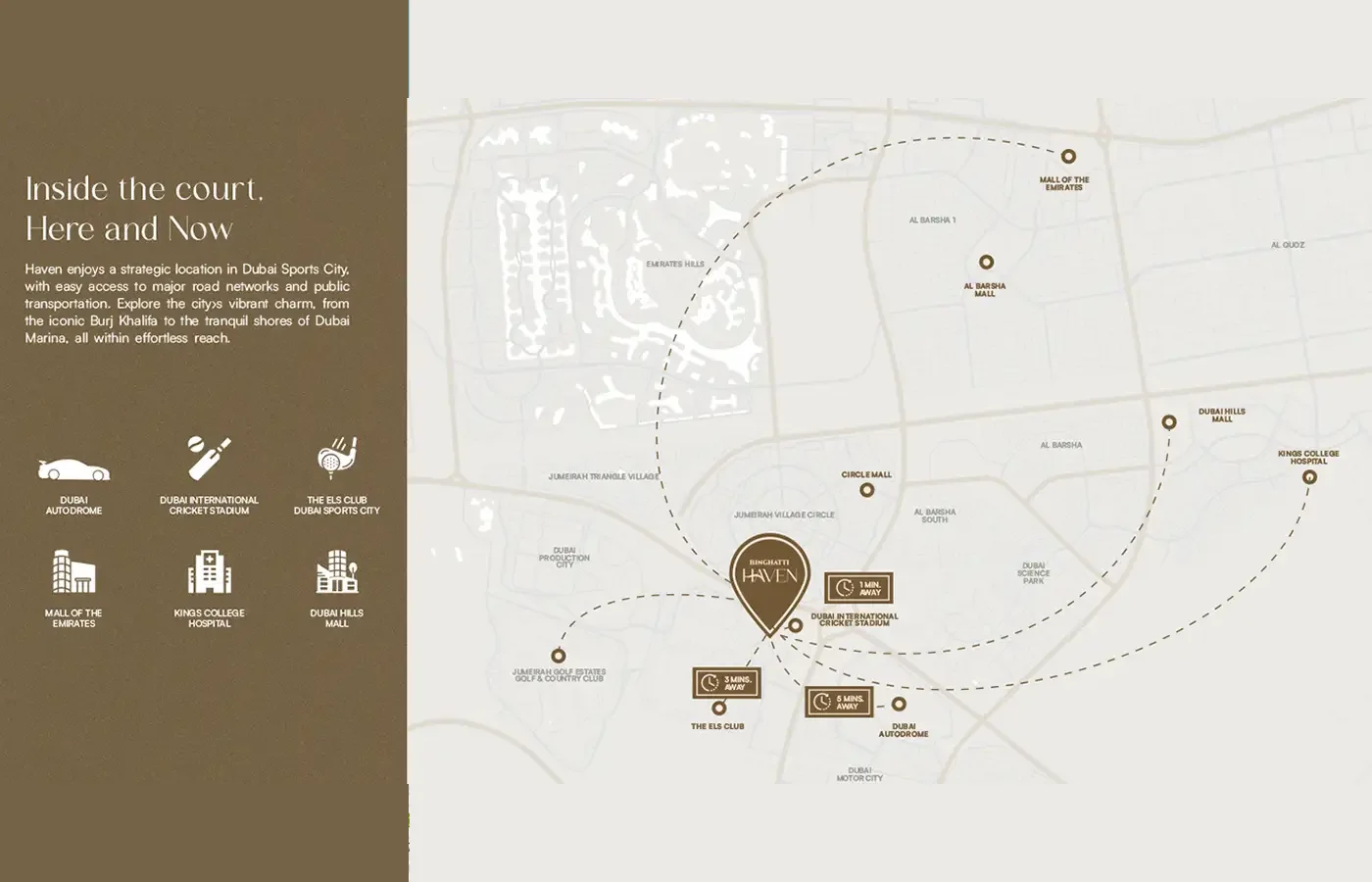 Dubai Sports City is a fast-developing district with rising rental demand, making Binghatti Haven a lucrative option for both investors and end-users