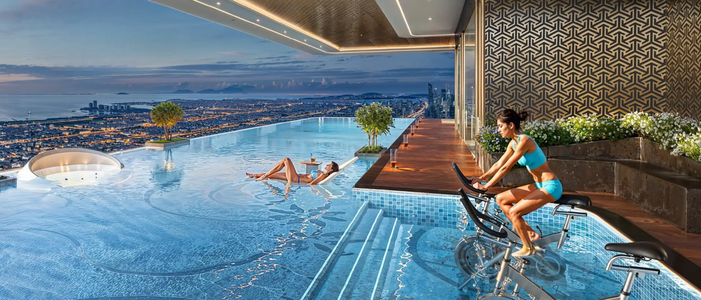 Residents can enjoy a premium lifestyle with facilities such as an infinity pool, state-of-the-art gym, landscaped leisure areas, retail outlets, and wellness zones within the development.