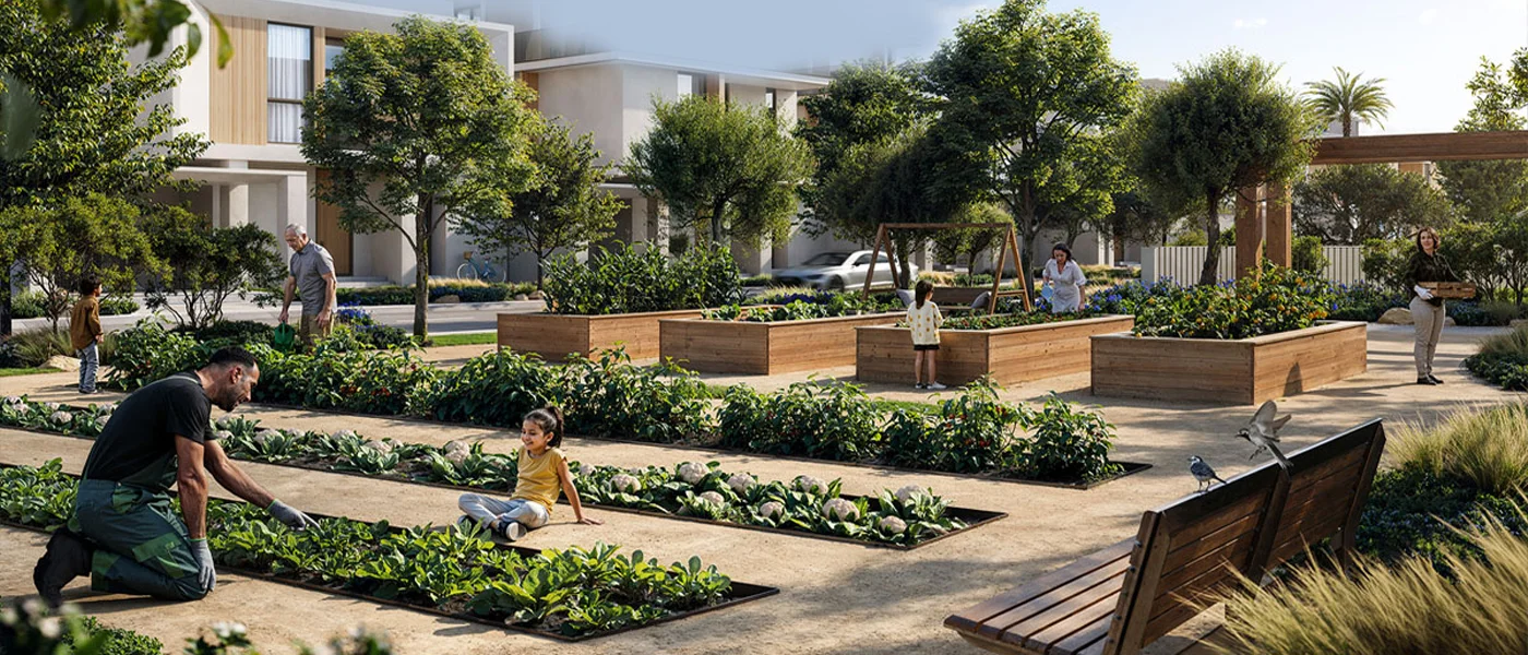 Farm Grove offers spacious 4 and 5-bedroom villas surrounded by natural greenery and shaded by native Ghaf trees. These homes are thoughtfully designed to create a peaceful environment with plenty of natural light and open spaces.