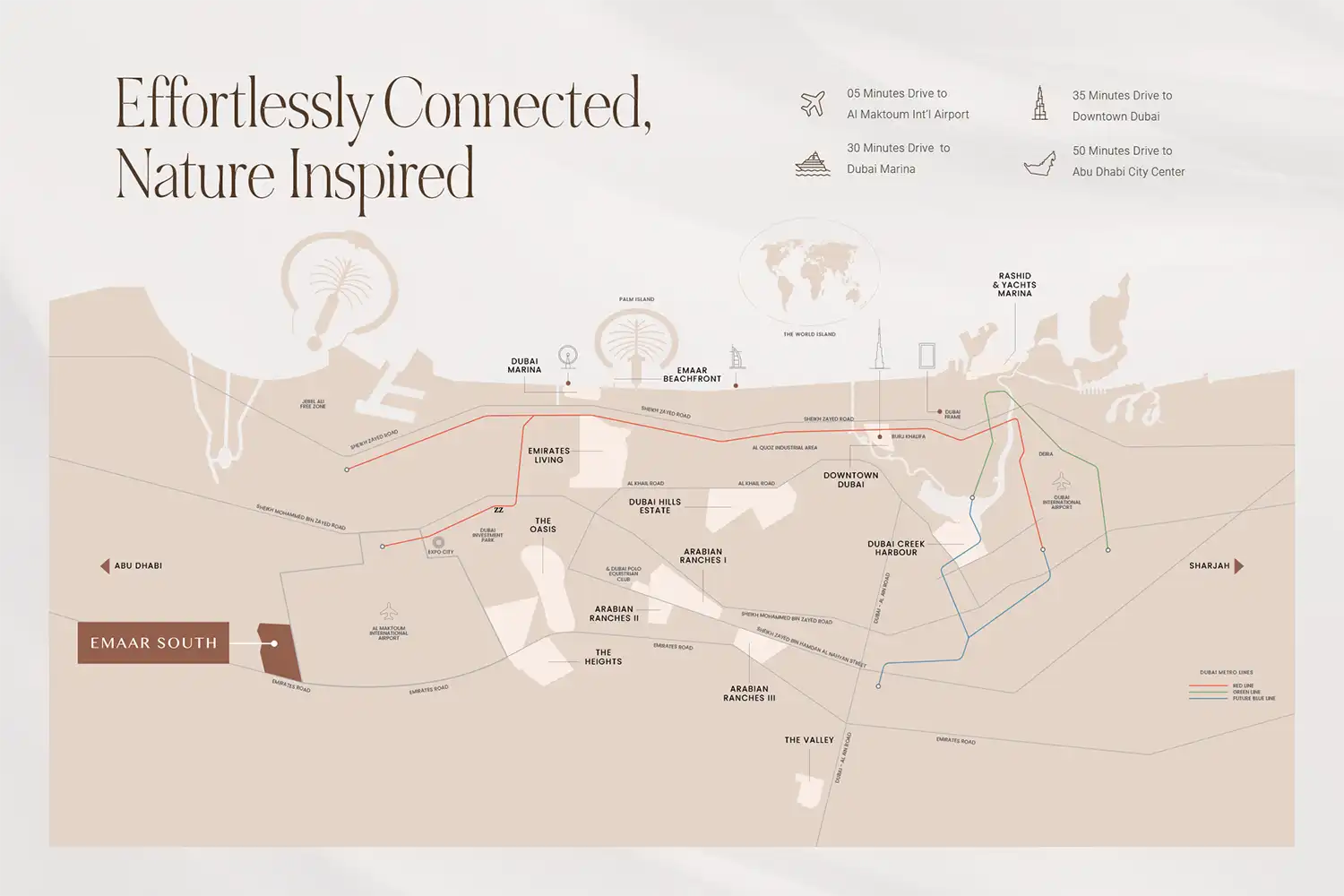 Golf Edge is situated in a prime spot within Dubai South, offering quick access to major road networks and Al Maktoum International Airport, ideal for smooth and efficient commuting.