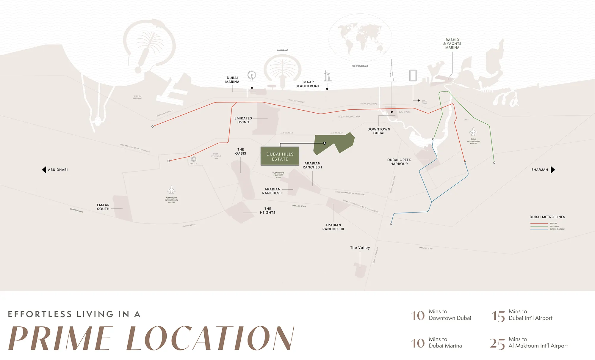Situated in one of Dubai’s most prestigious master communities, Golf Hillside offers direct access to Al Khail Road, quick connectivity to Downtown Dubai, Dubai Marina, and major leisure hubs.