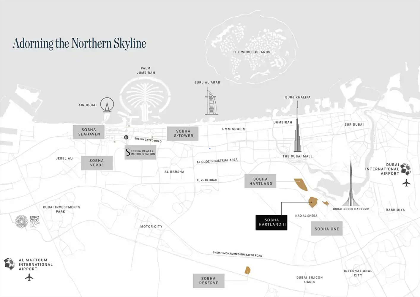 Emaar Greenville is located in Madinat Al Mataar within the Emaar South community, Dubai. The location is well-connected to Al Maktoum International Airport and other key areas of the city, offering residents both convenience and accessibility.