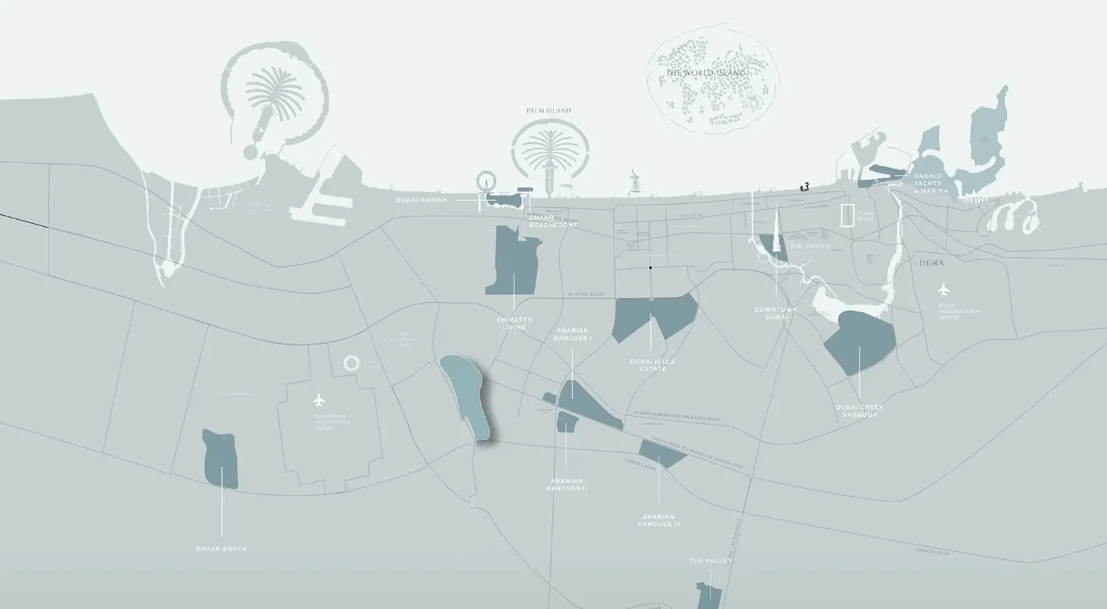 Mirage is located in The Oasis, Dubai, a master-planned community by Emaar Properties. The project offers easy access to Dubai International Airport, Downtown Dubai, and nearby retail and leisure hubs while being surrounded by scenic landscapes and community parks.