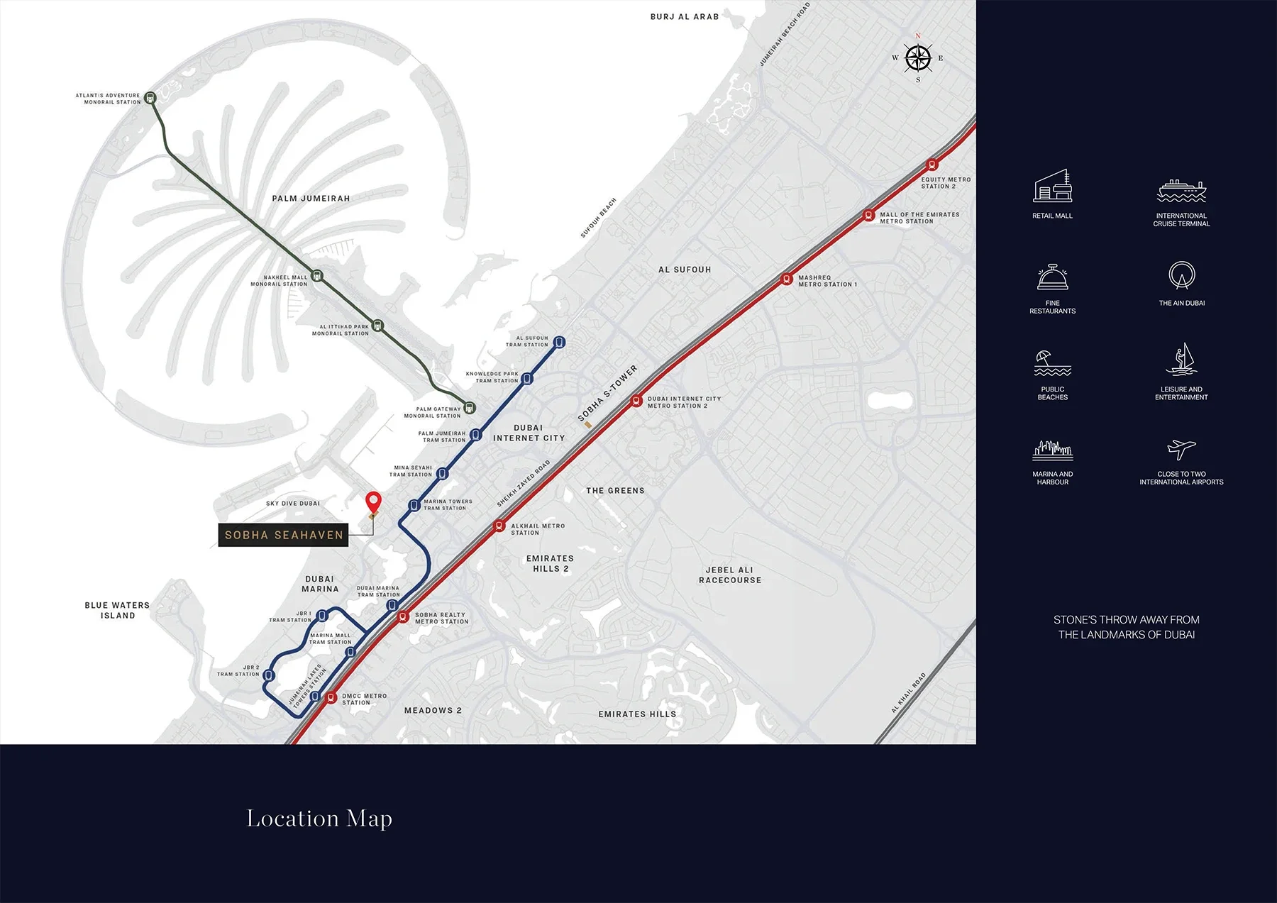 Seamless access to Sheikh Zayed Road ensures quick connectivity to Downtown Dubai, Palm Jumeirah, Dubai Marina, and the airport.