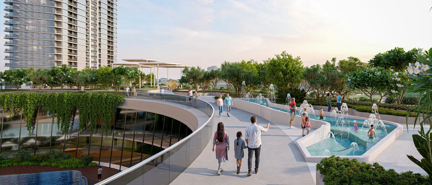 The project includes numerous lifestyle-enhancing facilities such as a fitness center branded by Arsenal, swimming pools, jogging tracks, outdoor cinema, kids’ play areas, rock climbing walls, dog parks, co-working spaces, and retail and dining options, designed to meet the diverse needs of residents.