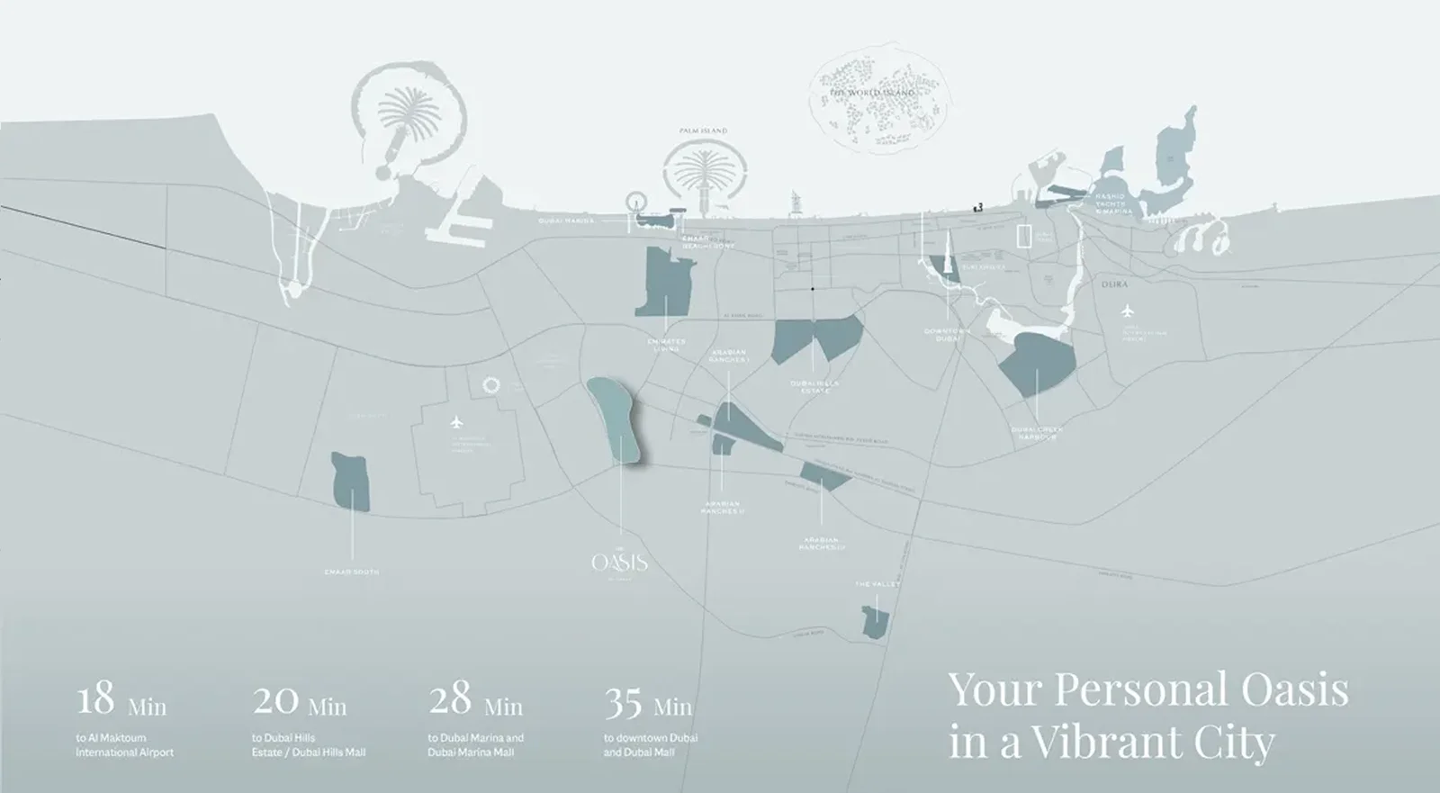 Located close to key highways, The Oasis ensures smooth access to Downtown Dubai, Dubai Marina, and other major landmarks across the city.