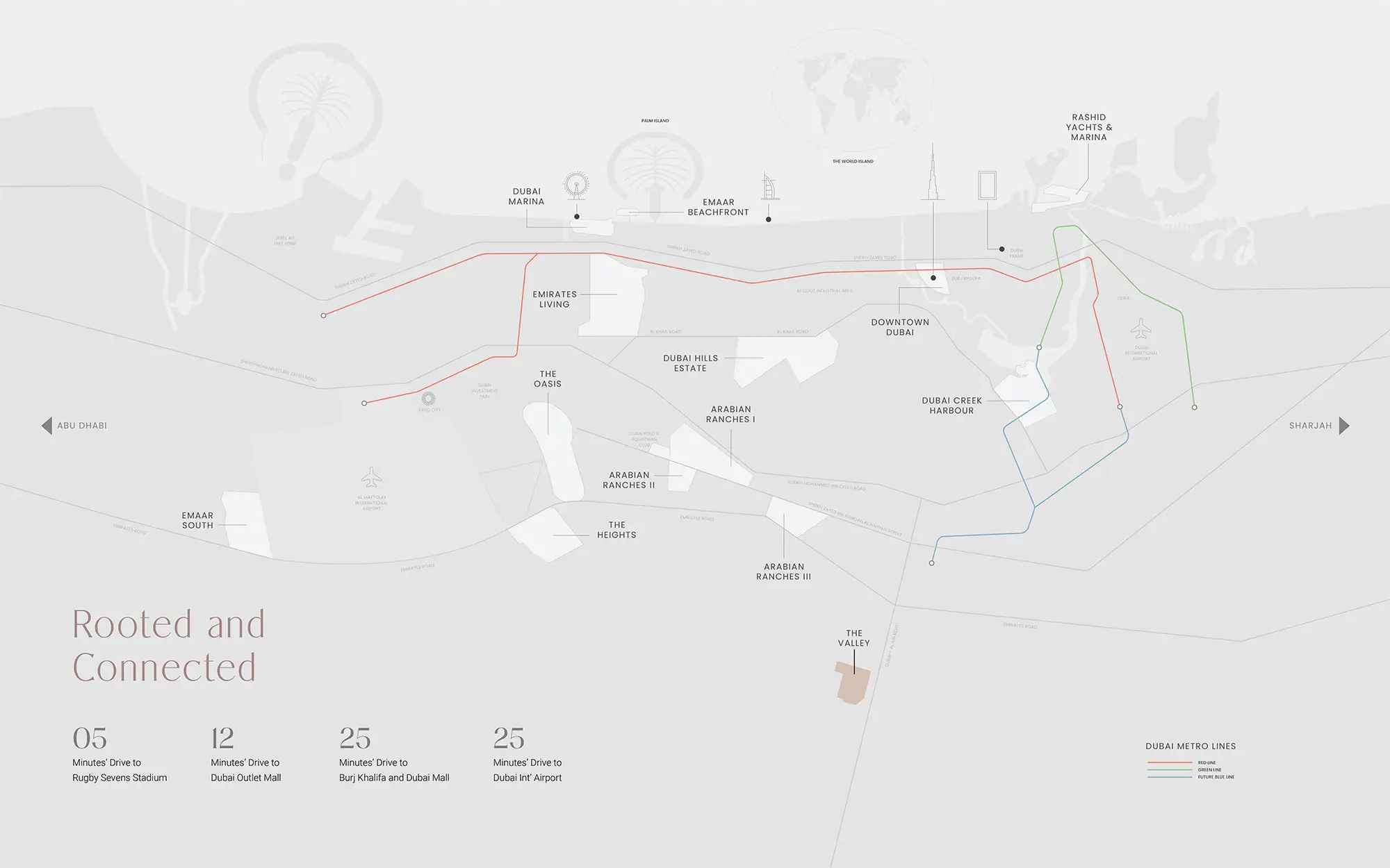 Vindera is set within The Valley, a master-planned development by Emaar, positioned along the Dubai–Al Ain Road for seamless access to Downtown Dubai, Dubai International Airport, and key leisure destinations.
